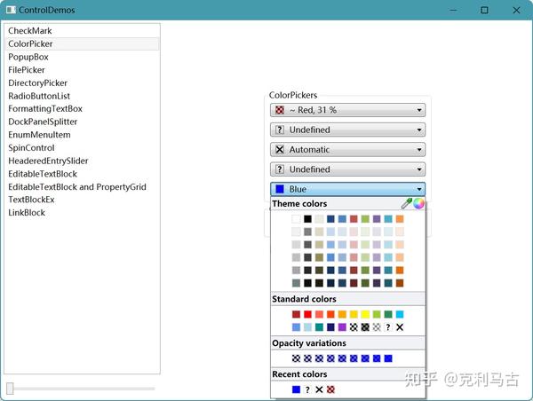 功能简介:一些 WPF 自定义控件:PropertyGrid, DataGrid, 多选 TreeView, ColorPicker 等等。