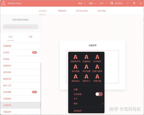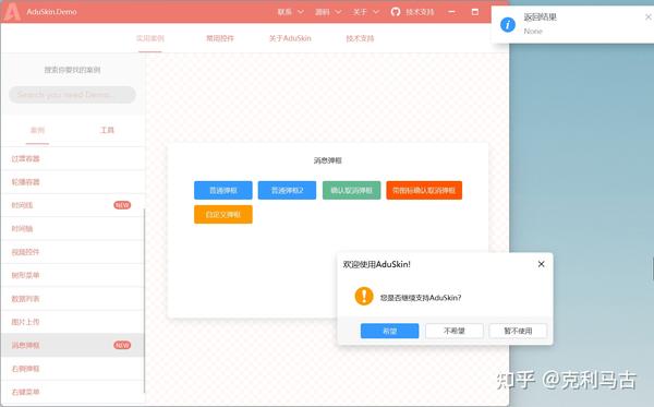 效果演示: https:// github.com/aduskin/AduS kin#%E7%BB%84%E4%BB%B6%E5%B1%95%E7%A4%BA