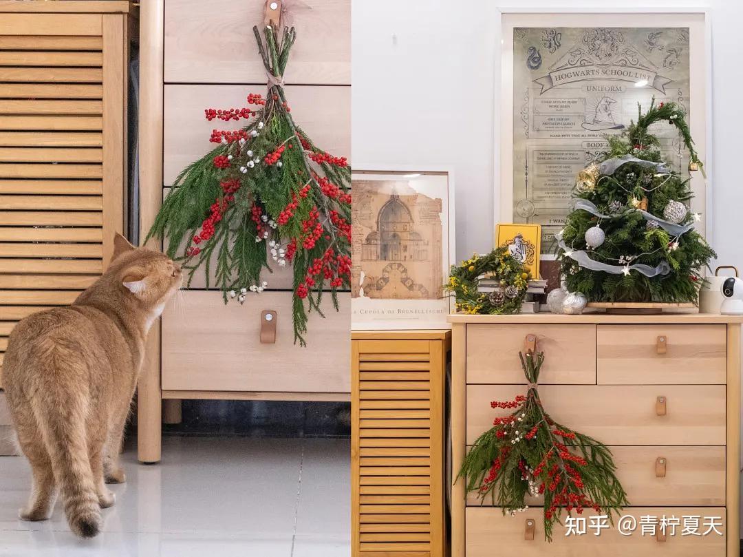 原本打算做个胖乎乎的歪脖子圣诞树和同色系的花环,