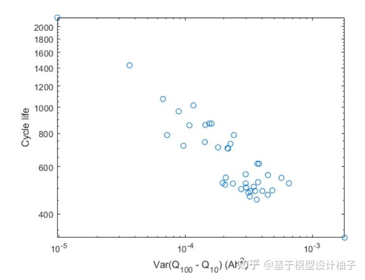 原代码的描述方式也很有意思,它建立了每一个电芯 Q100-10的方差 和 总寿命 的关系: