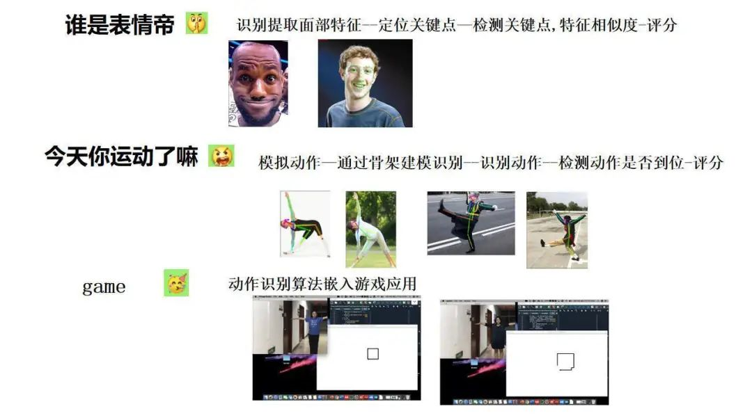 这个夏令营小组充满了活力和古灵精怪的想法,组员们通过将动作识别算法嵌入游戏应用的方式,运用课程中所学内容,制作出了多款AI互动游戏,让课题分享会的气氛变得更加活跃。
