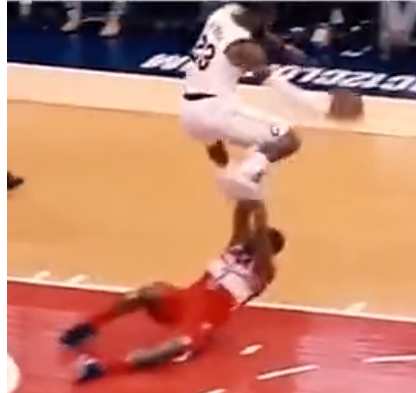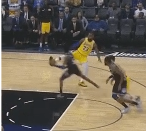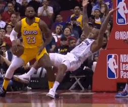 詹姆斯故意伸脚想要绊倒对手