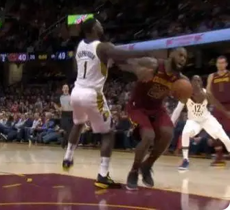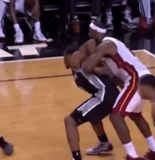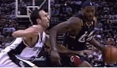 ,詹姆斯肘击吉诺比利(未吹罚)