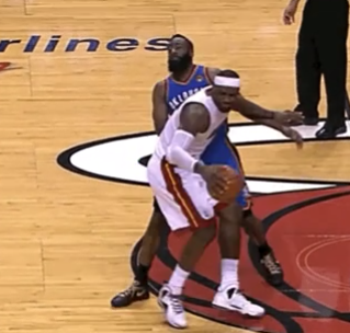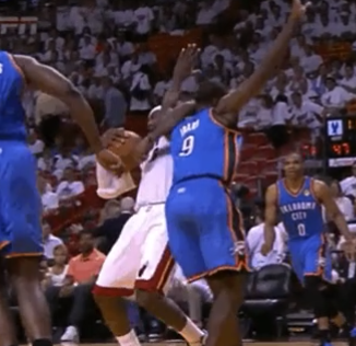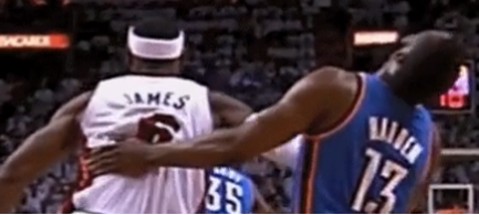2012总决G5 第2节詹姆斯肘击哈登 未吹罚