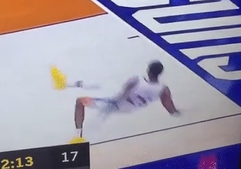 再次推翻防守人,裁判眼睁睁看着不吹