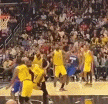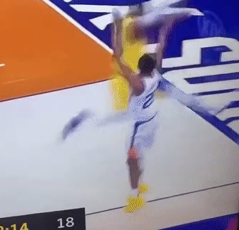 上篮时朝背后一肘,在空中又是一肘,直接把韦伯肘到痛苦倒地捂脸。