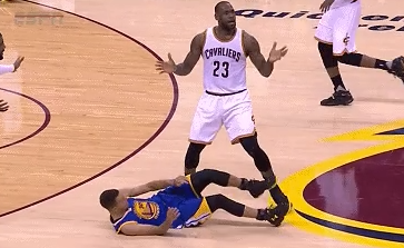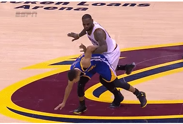 2015东决G1,詹姆斯故意撞倒卡罗尔,导致卡罗尔膝盖重伤离场