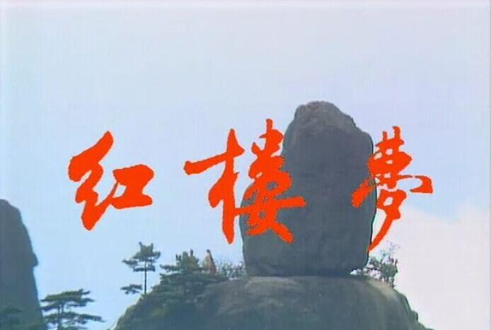 随着画面再一次自然切换至空中,字幕打出 “电视连续剧 ”,随之而来的是悠扬凄婉的女声缓缓响起。五个大字飘向远方,镜头逐渐聚焦在那块顽石上——兀立于群山之中,被层层的苍绿和无限的时空岁月包围与雕琢的那块顽石,片名“红楼梦”这三个血红的大字,沈尹默老先生的经典题词仿佛从石中迸出,出现在我们的眼前。女声依旧绵长婉转,令人味之不尽:
