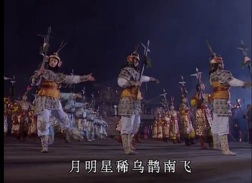 刘备和孙夫人成亲时的歌曲,乃历史上实有的南朝民歌《子夜四时歌》的集锦,且令人惊喜的是用吴地特有的吴侬软语唱出,非常符合东吴的地域特色,欢快而缠绵中不失礼数的严谨,更不用说画面的大气、华贵和上百人的舞蹈,皇家婚礼的规格尽显,剧组的用心可见一斑。老三国动用群演几万人和解放军部队,说老三国不大气的真应该看看这段,还有赤壁和官渡的戏份,让他们看看什么是真实,什么是大气和用心: