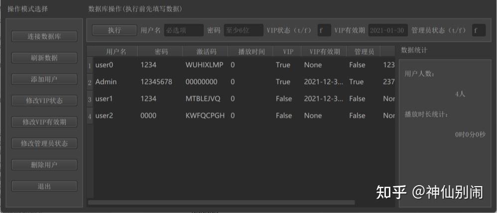 用户可以完成注册登录操作访问数据,并且通过获取激活码,可以得到 VIP 权限;对管理员也设置了权限,区分了不同的使用对象。