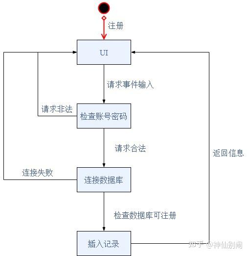 | 触发事件 | 输入新账号和密码及其他信息 ;点击注册按钮 | |