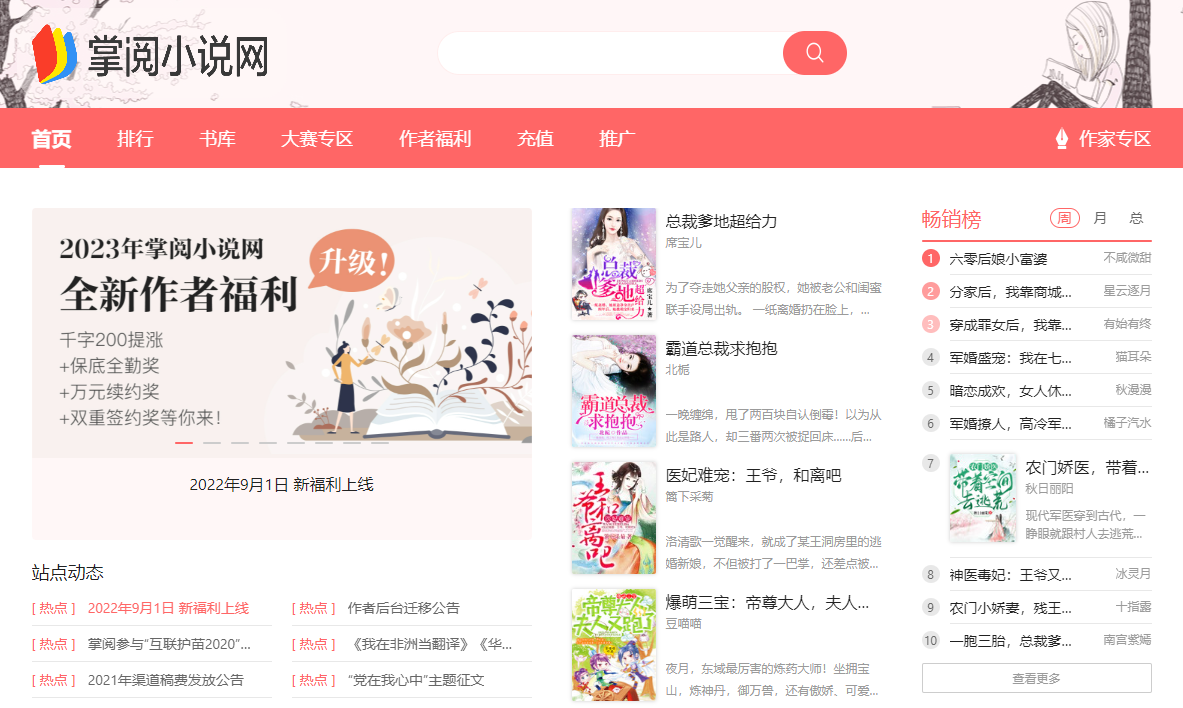 掌阅也是一个看小说的网站,里面资源很多,各种原著小说都可以在里面找到,还有穿越时空、总裁豪门、古代言情、悬疑等不同的小说类型,可以妥妥地满足上班摸鱼和打发通勤时间~