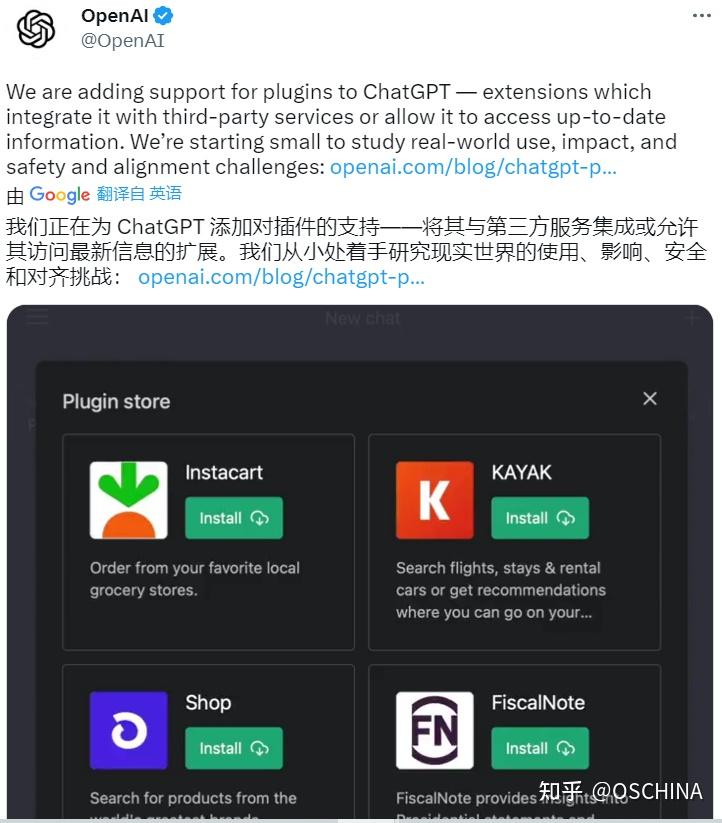 OpenAI 宣布已经在 ChatGPT 中实现了对插件的初步支持。插件 (Plugins) 是专门为语言模型设计的工具,以安全为核心原则, 可帮助 ChatGPT 访问最新信息、运行计算或使用第三方服务 。