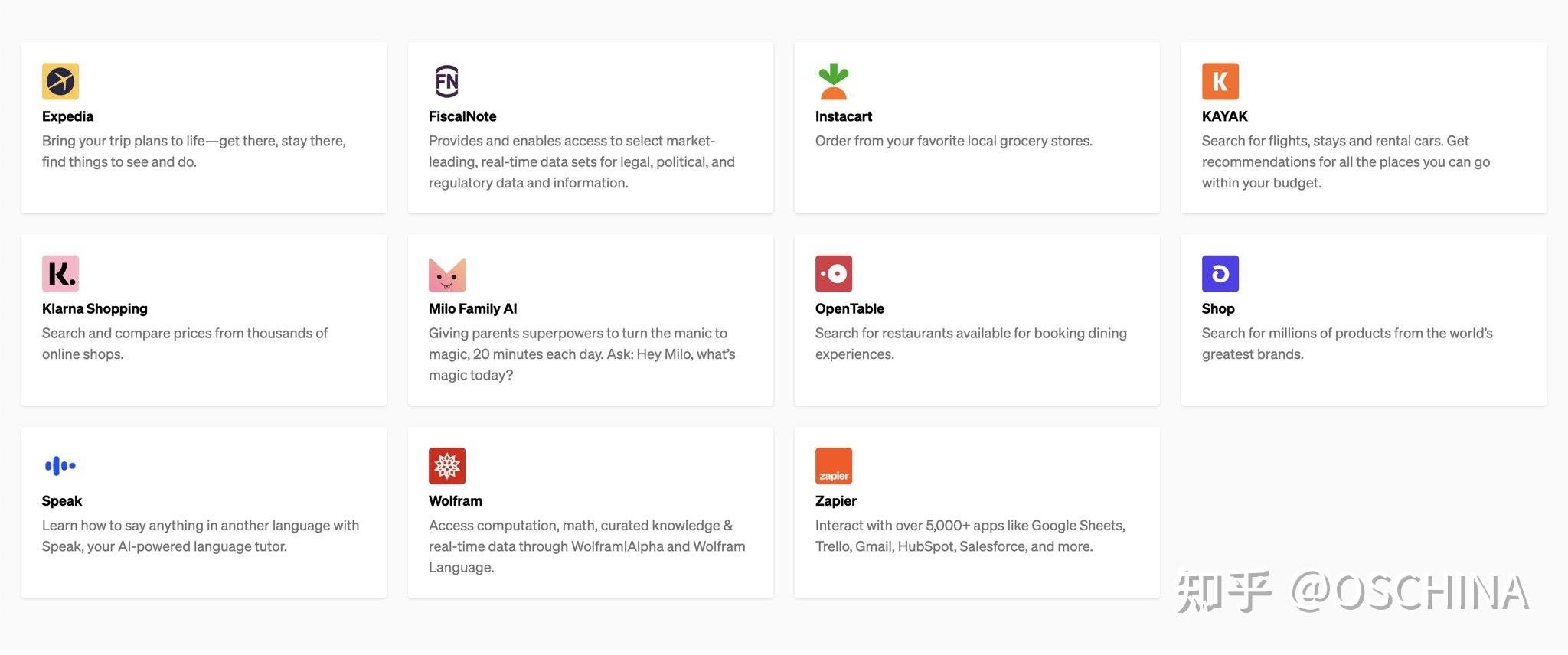 这就意味着第三方开发商能够为 ChatGPT 开发插件,以将自己的服务集成到 ChatGPT 的对话窗口中。从演示来看,首批开放可使用的插件包括了酒店航班预订、外卖服务、在线购物、法律知识、专业问答、文字生成语音,以及用于连接不同产品的 Zapier 等。
