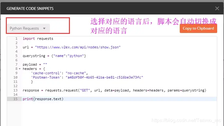 点击copy to clipboard(复制到粘贴板)按钮,成功复制脚本