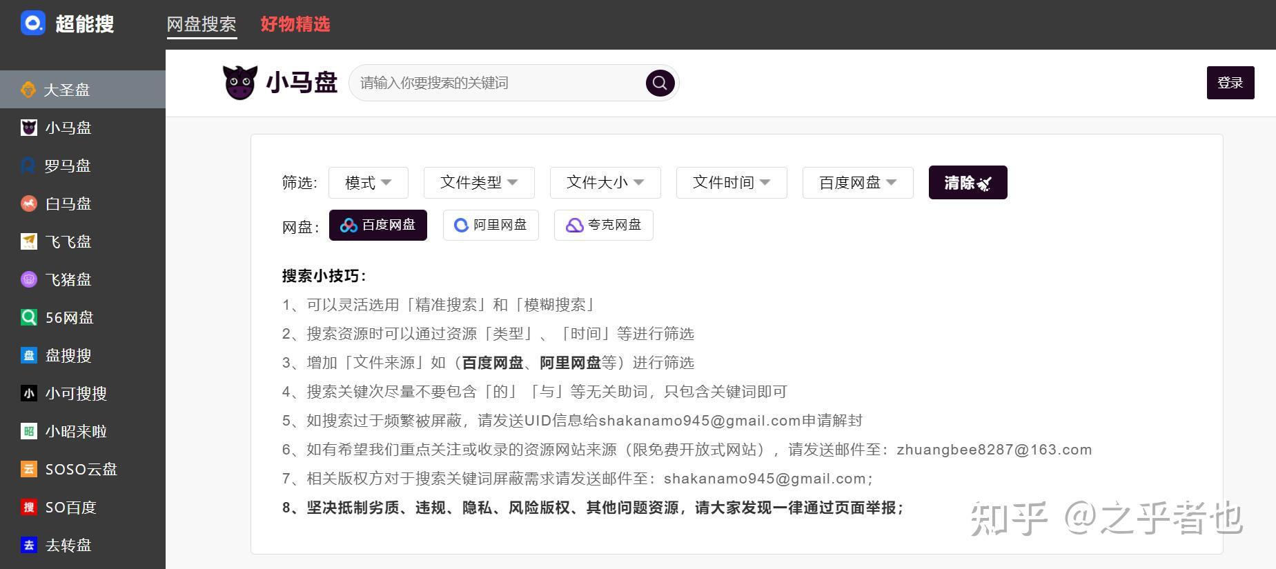 一个支持百度网盘和阿里云的在线网盘资源搜索引擎,搜索质量很不错。