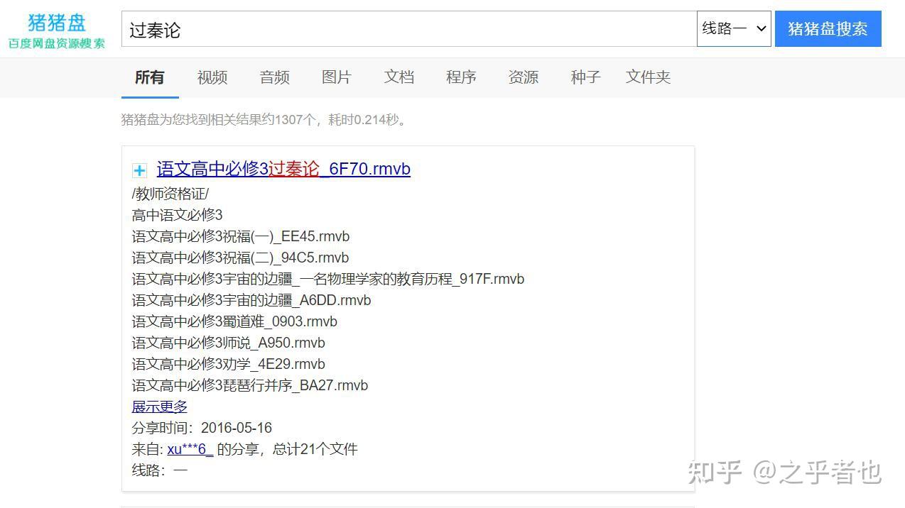 不过该网盘有提示普通用户只能免费试用线路一搜索功能。网站提供的每条线路的数据不同,搜索结果也不同。