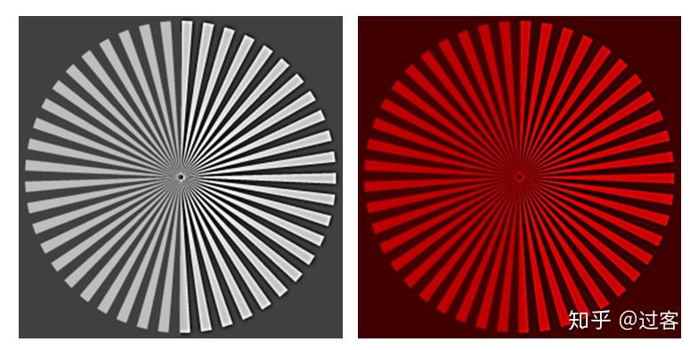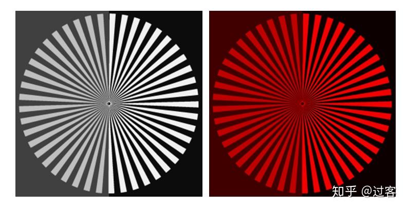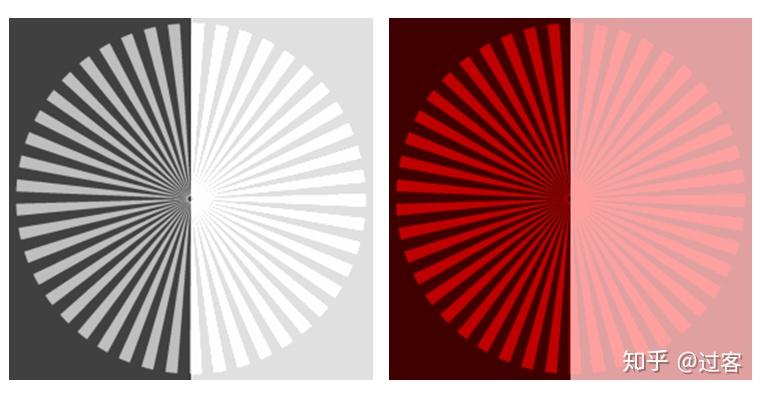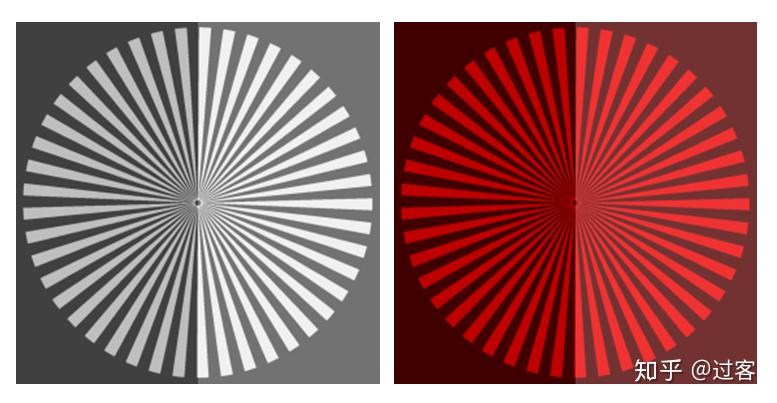 上面白色和红色辐条图像的右侧都增加了对比度,但我们可以看出右侧的白色辐条或是红色辐条随着对比度的增加,白/红色辐条都变亮了,背景变暗了,图像看起来更加清晰。