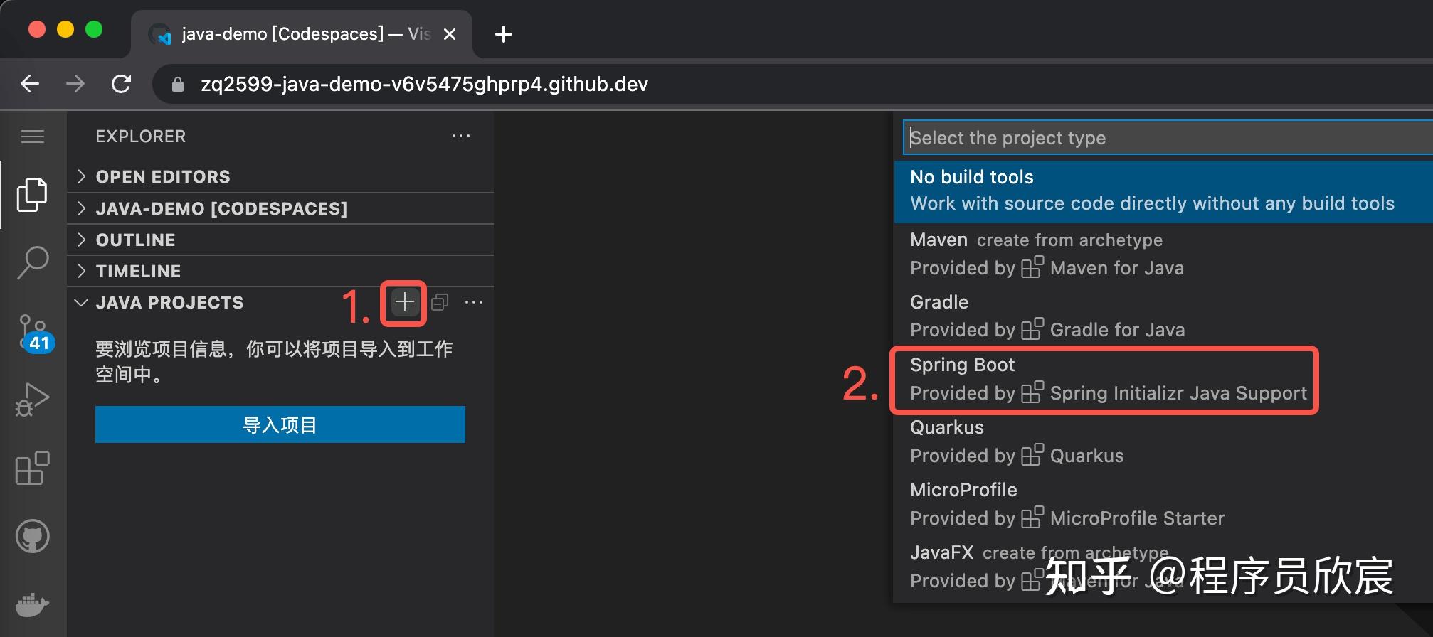 按钮去创建Codespaces