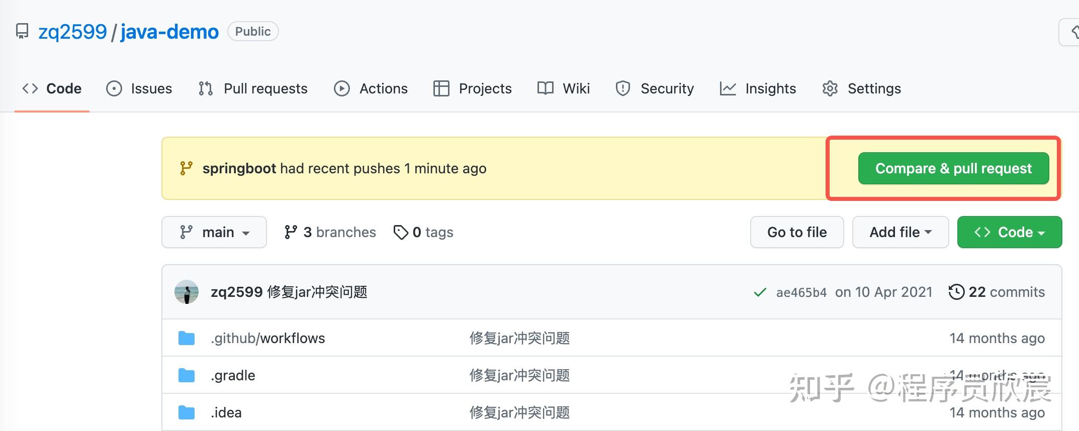 - 打开github,发现新分支已经提交,而且还创建了PR,你可以选择是否合并到main分支