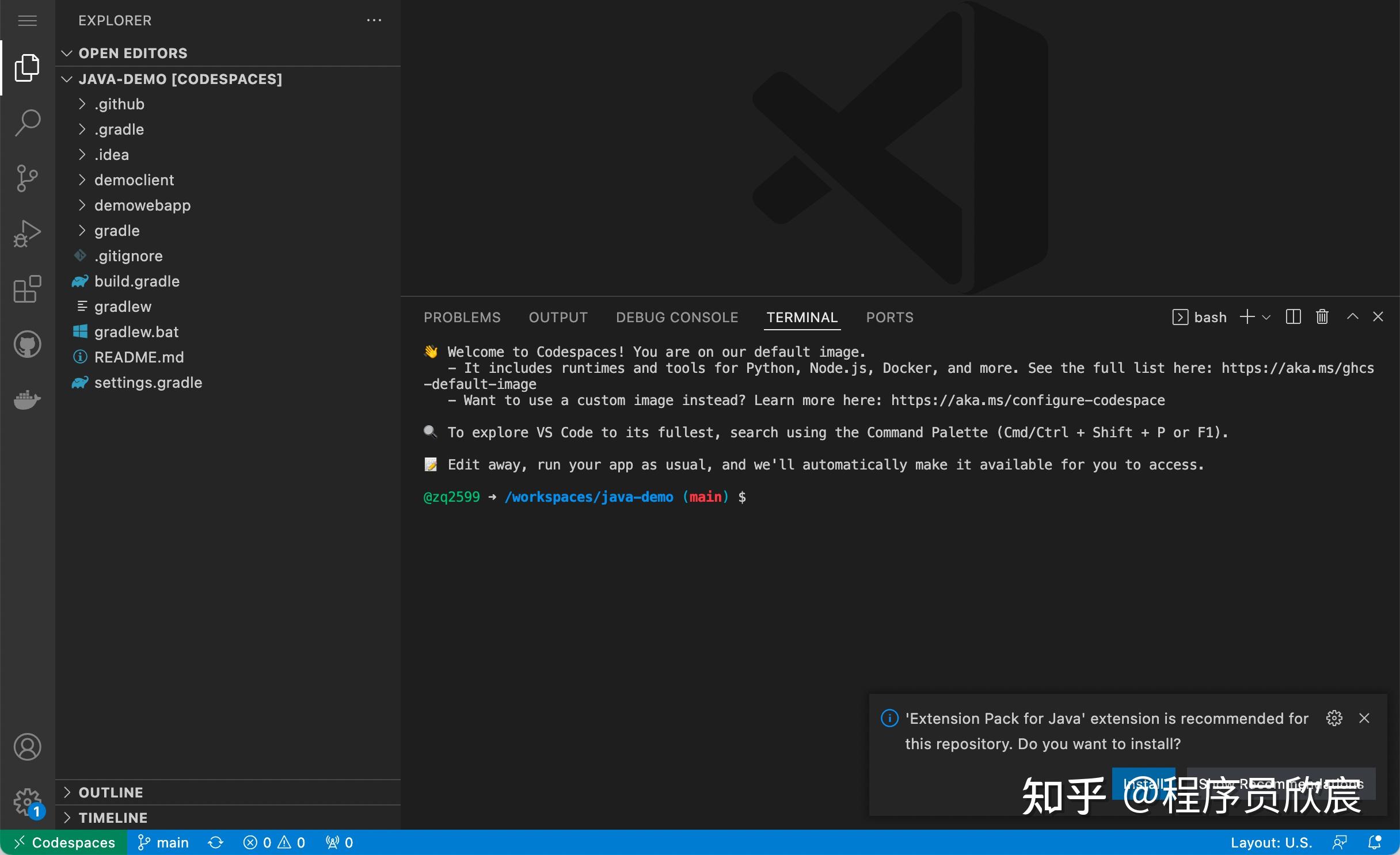 - 至此,Codespaces最基本的体验已经完成,相信您和欣宸一样,对默认环境的配置会感到不满,敬请期待接下来的自由定制篇,欣宸原创,不会让您失望~