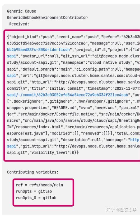 gitlab webhook发送到Jenkins的请求是一个json,有时我们需要获取一些请求信息,如分支名、触发者等相关信息,这里即可做到。