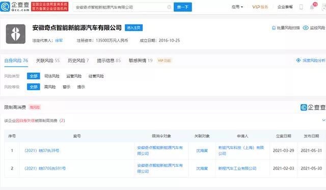 据“界面”报道,2019年5月30日,奇点汽车增资扩股,奇点汽车新增包括安徽金通新能源汽车一期基金合伙企业在内的三家投资公司,注册资本新增633万元达到7686.88万元。查阅资料后发现,安徽金通新能源汽车一期基金合伙企业,其背后是由安徽省人民政府国有资产监督管理委员会控股。并且安徽省国资委已经向奇点汽车派驻董事、监事以及相关财务人员。