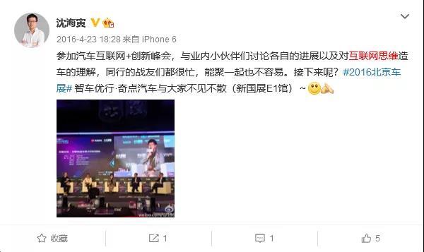 再看沈海寅刚刚推动奇点汽车的时候,沈海寅曾在个人社交媒体上发文,想用互联网的模式来造车,“向软件的360模式和硬件的小米模式致敬。”