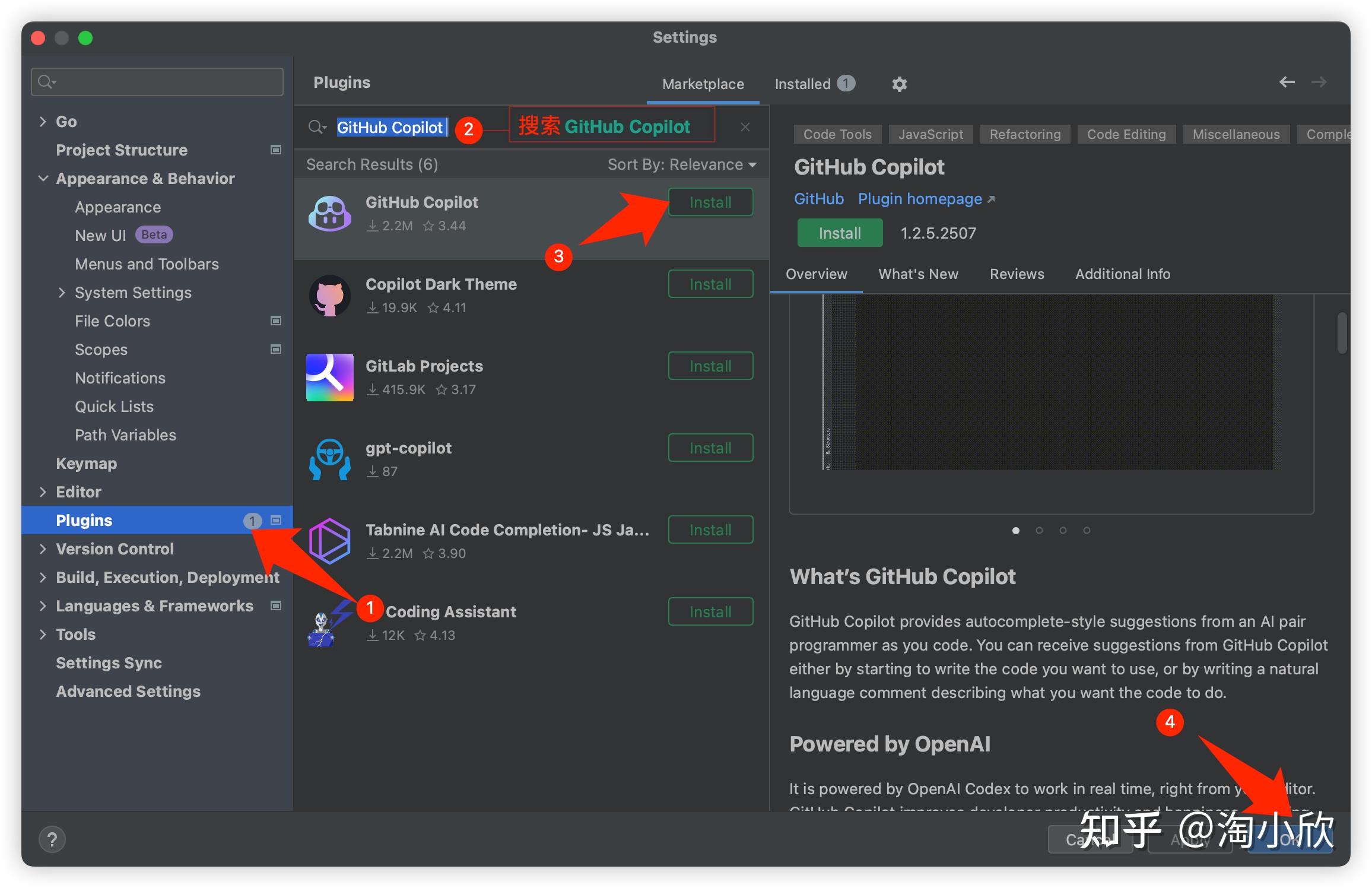 搜索插件“ GitHub Copilot ” 直接安装即可