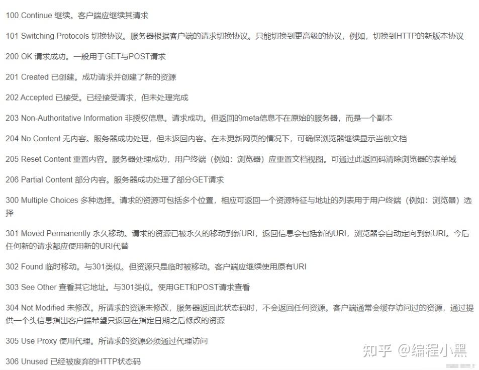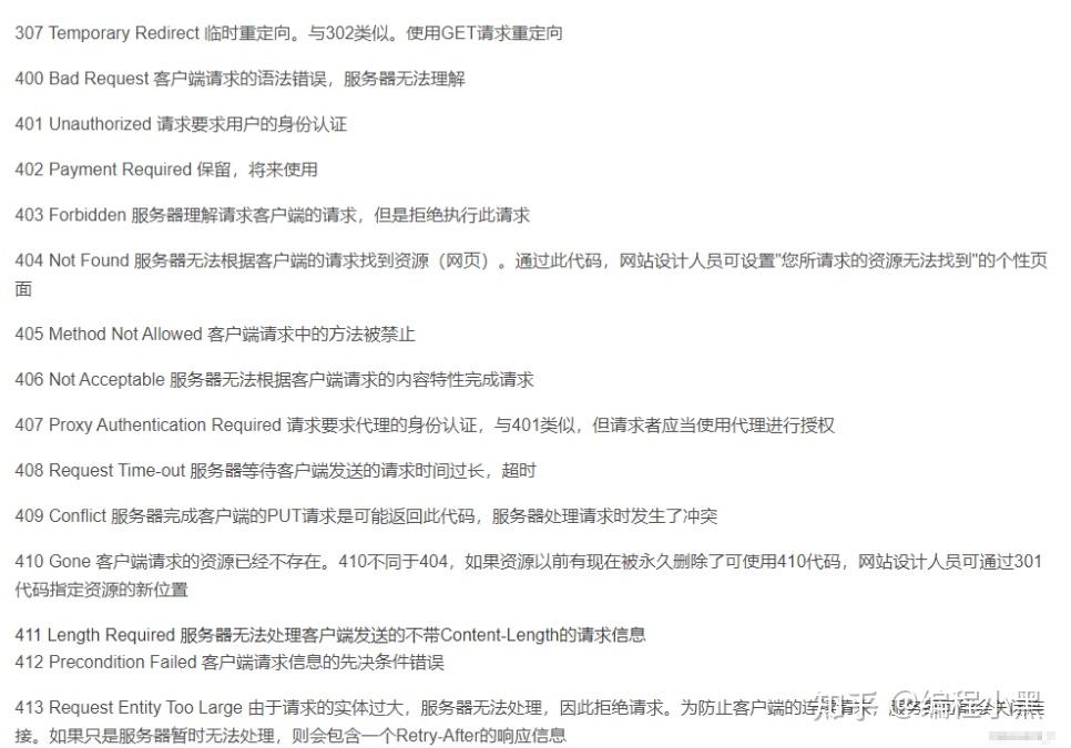 这里状态码有一张表,对应了各个状态码的意思