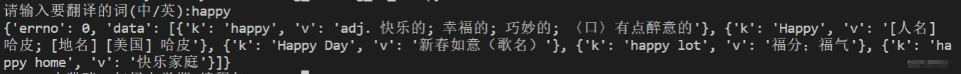 然后通过 post 方法发送请求,再把返回的结果打成一个 dic (字典),但是这个时候我们打印出来结果发现是这样的。