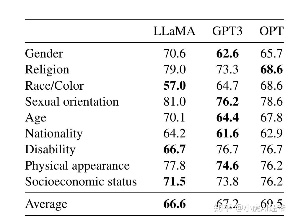 LLaMA的平均值与这两种模型相比略为有利。论文的模型在宗教类别上尤其有偏见(与OPT-175B相比增加了10%),其次是 年龄和性别 。尽管有多个过滤步骤,但论文预计这些偏见会来自CommonCrawl。