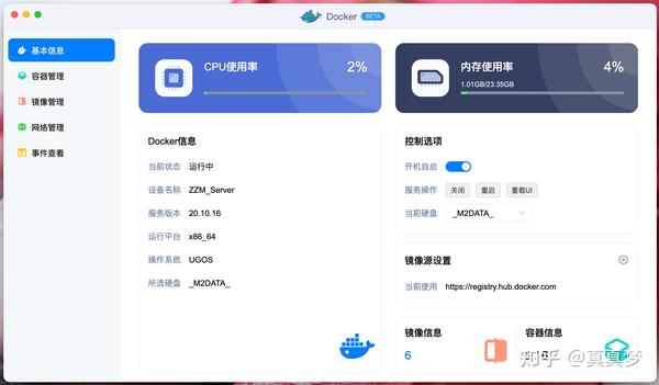 1.打开DOCKER功能模块,选上【开机自启】,保证一开机就开始上传下载,不用手动去操作。选择Docker存储路径的时候选那块M2固态硬盘就行了,用SATA固态也可以: