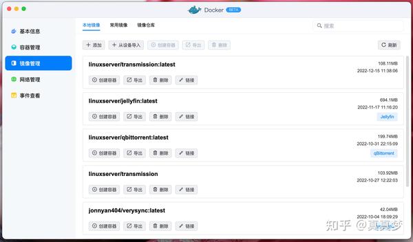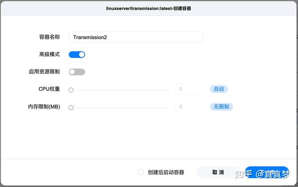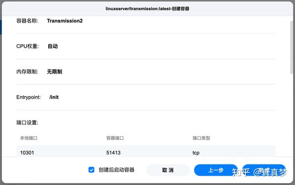 6.返回Docker的镜像管理界面,在刚才下载的linuxserver/transmission下方点击【创建容器】: