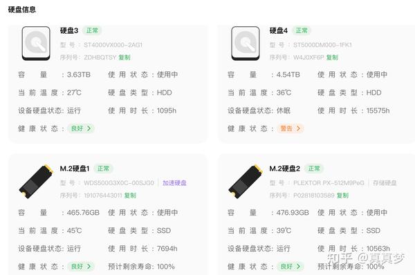 最后是很多人关心的功耗问题吧,我一直把DX4600接在小米插座上计量,每天24小时挂机下载司机功耗0.6度/天,每个月需要18度电,也就是差不多10块钱电费的样子。这是2块M2固态、2条内存条、3个2.5寸机械硬盘、1个2.5寸固态硬盘配置的耗电量哦,不过大多数时候只有下载盘在工作,其他机械盘处于休眠状态,其他盘也长时间活跃的话功耗肯定会更高一些的: