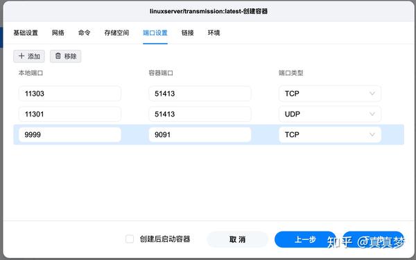 9.点击顶上的【端口设置】,默认【本地端口】是自动,可以不改,也可以手动改,比如web界面访问端口我改成了9998方便记忆,这里的意思是把Transmission本来的9091端口映射到NAS的9998端口: