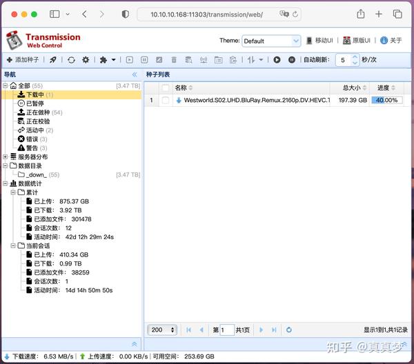 2022一直想做的事:自己搭建个电影库,把经典电影和剧集都收藏起来,也许有一天就下载不到了。我用来做备份四盘位NAS硬盘插满了,就新买了一台回来。说干就干,买来之后就开始准备,先搭建了一个稳定的PT下载环境。如图,搭建好之后下载了42天了,最近一次连续开机下载不关机稳定运行14天: