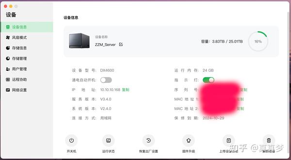 刚装上新硬盘和内存的时候截了个图,NAS总容量25TB,内容都还是空的,内存24GB正确识别出来了: