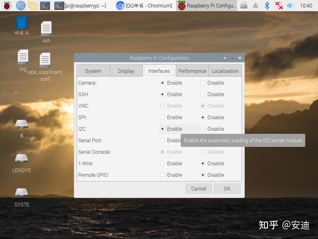 第二种方式,直接使用Raspberry Pi OS桌面环境的图形配置工具“Rasberry Pi Configuration”,导航至“Menu > Preferences > Raspberry Pi Configuration”开启。