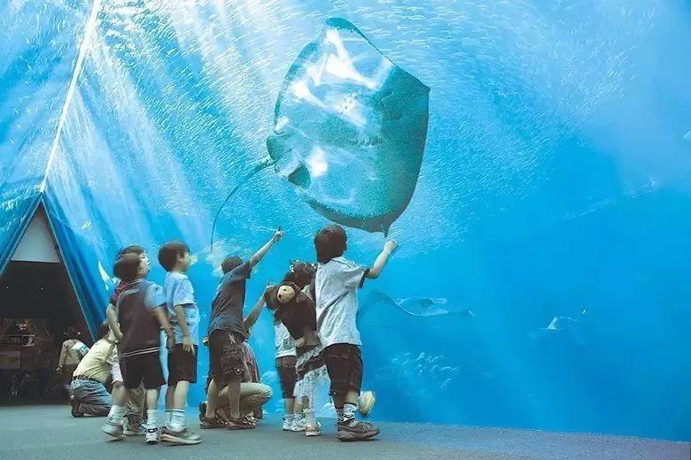水族馆不仅是与海洋生物亲密接触的好去处,也是带孩子学习的好地方。其中最为著名的就是巨型的三角形水槽,海洋馆总是能拍出超棒的照片!
