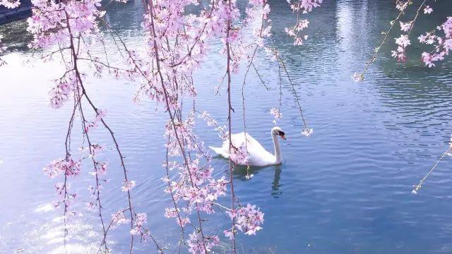 而樱花季来这里与众不同的是可以划着天鹅船,醉倒在迷人的樱花里。若赶不上樱花盛开那几日,落樱时节也一定要来,因为这里有大片大片迷倒人的樱花河。