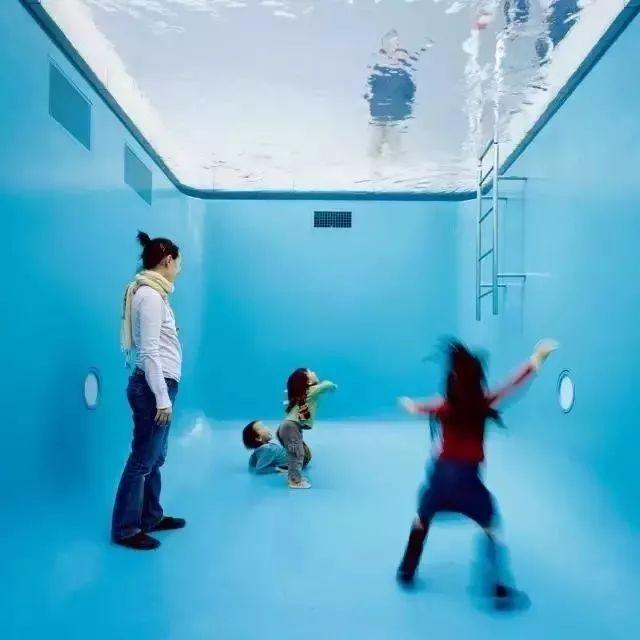 金泽21世纪美术馆中最值得玩味的,可能要数艺术家林德罗·厄利什的作品——《泳池》。它巧妙地在天窗上注入一些水,再设计上假的泳池扶手,变成了一个以假乱真的泳池。“泳池”下方游客照常走动,形成了一个奇妙而错综的艺术空间。