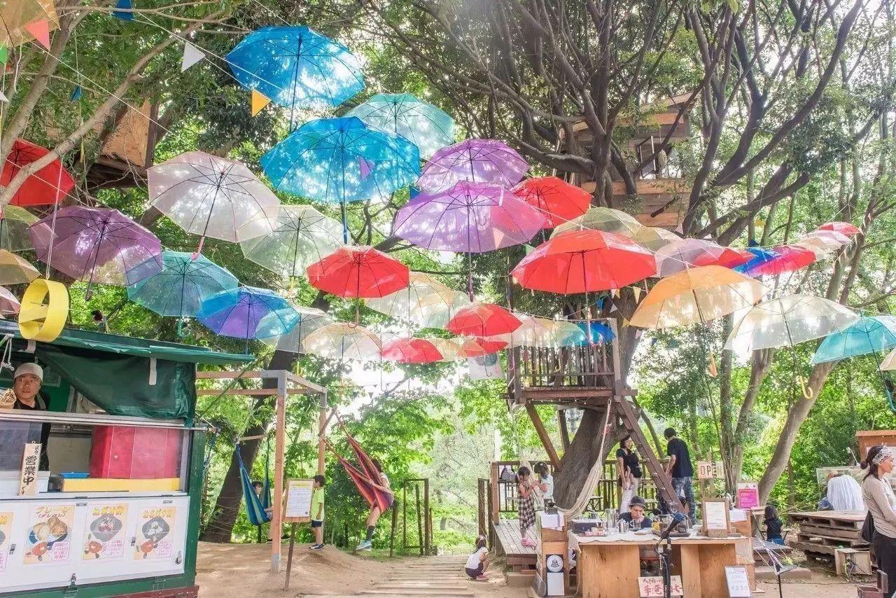 树屋可以说是很多人儿时的理想了,千叶县就有这么一家人气树屋。被彩旗、雨伞和森林围绕的树屋,累了还可以来杯咖啡休息一下,如同故事中的场景,怎会不引人驻足呢?