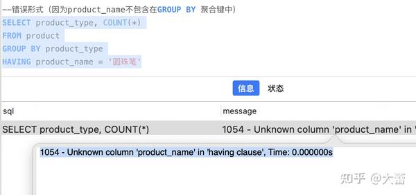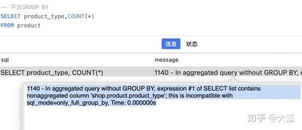 -- 错误形式(因为product_name不包含在GROUP BY聚合键中)