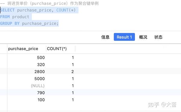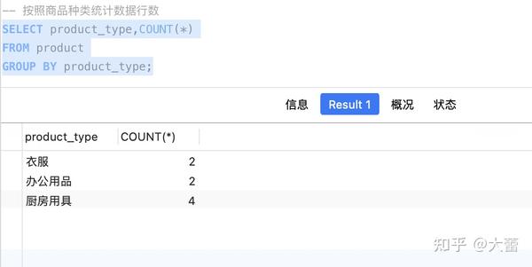 - COUNT函数的结果根据参数的不同而不同。COUNT(*)会得到包含NULL的数据行数,而COUNT(<列名>)会得到NULL之外的数据行数。