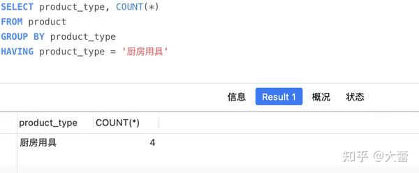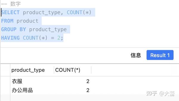 HAVING子句用于对分组进行过滤,可以使用 数字、聚合函数和GROUP BY中指定的列名 (聚合键)。