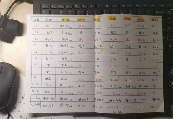 古日语的动词变形,我再把前面那张图粘过来一下哈,方便你观看: