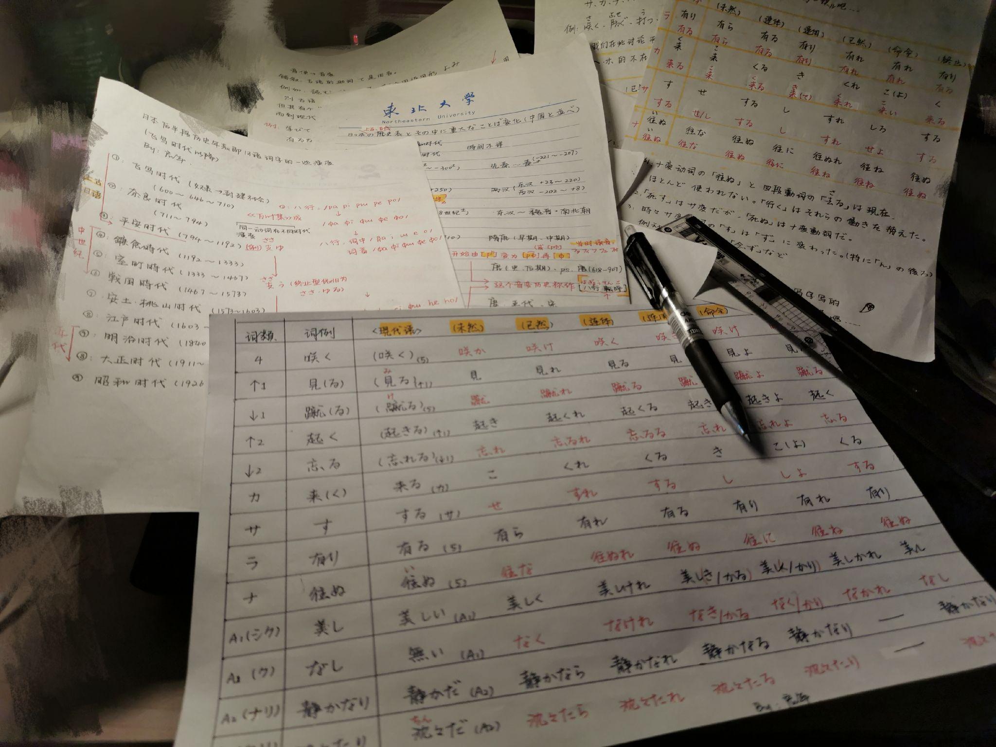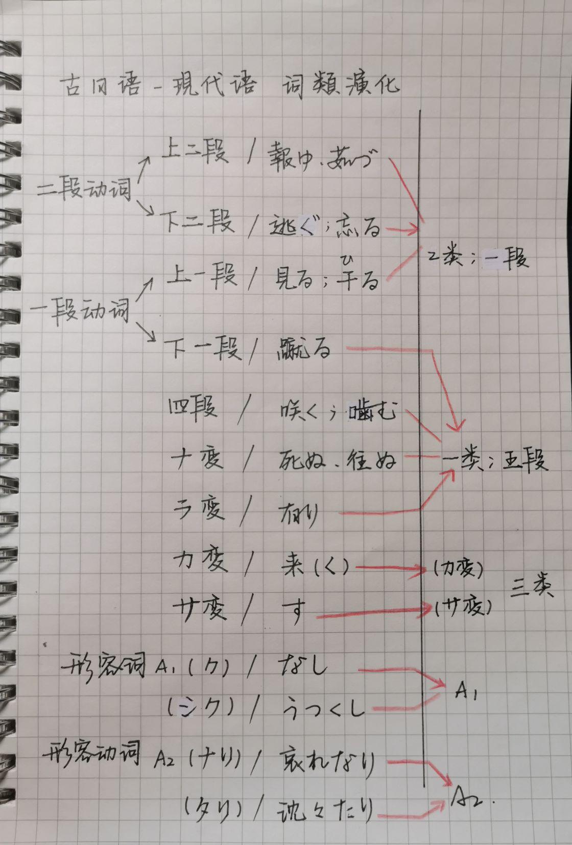 就比如有些词,在平安时代是下二段动词,到镰仓时代又变成四段动词……这种情况也偶有发生,我没有办法一一列举。