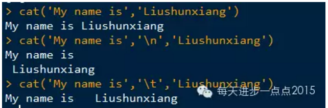 cat()函数可以显示和连接字符串。该函数可以将字符值合并,并直接打印在屏幕中,
