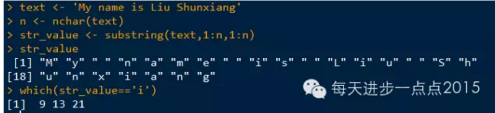 为了找到字符串中一个特定字符的位置,首先需要将字符串转换为字符向量(可以向substr函数的first和last参数传递向量来完成),然后通过which函数确定某个字符的位置